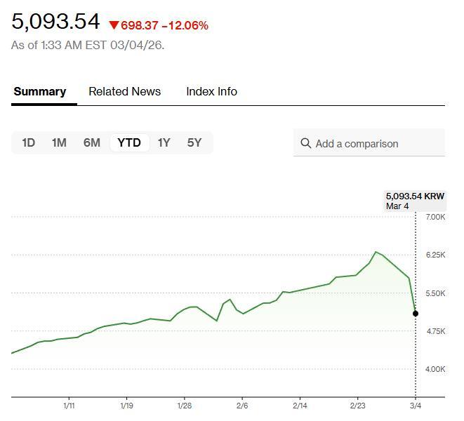 同日,日韩股市低开低走,截止收盘,日经225指数跌3.61%,报54245.54点,韩国详尽指数(KOSPI)跌12.06%,报5093.54点。